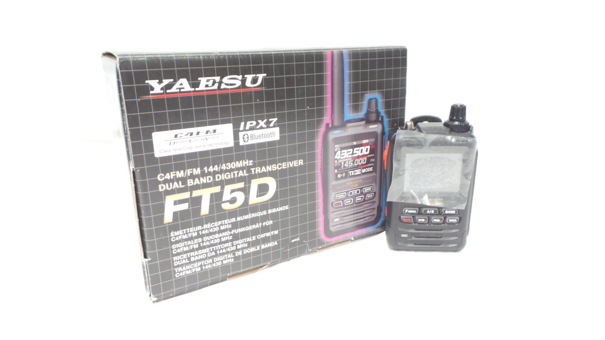 The Yaesu FT5D is a dual band VHF/UHF handheld transceiver with C4FM digital Fusion capability, designed for amateur radio operators requiring both analogue and digital operation.
